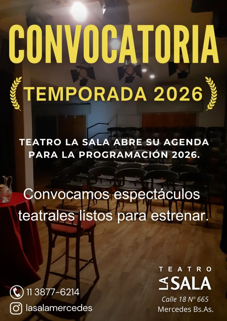 eatro La Sala abre su agenda para la programación 2026 y convoca a elencos con espectáculos teatrales listos para estrenar.